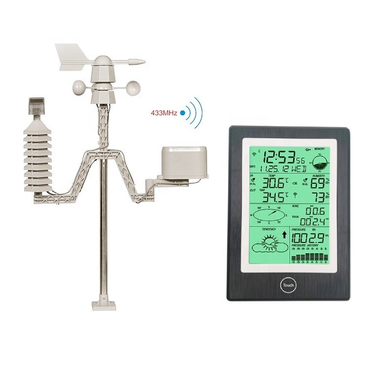 Ο συμπαγής πολυλειτουργικός σταθμός καιρού δείχνει την κατεύθυνση του ανέμου και την βροχόπτωση αυτόματα