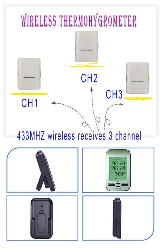 Ένας εσωτερικός δέκτης μπορεί να δει θερμοκρασία και υγρασία από τρεις διαφορετικές γωνίες. 433MHZ ασύρματα λαμβάνει δεδομένα 3 καναλιών, χωρίς εμπόδια και χωρίς παρεμβολές σε ακτίνα 100 μέτρων.